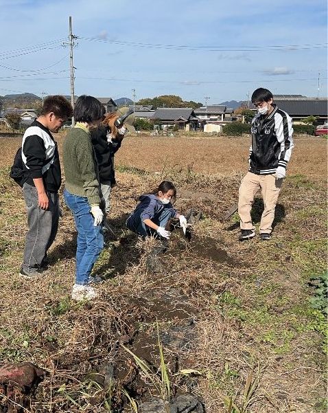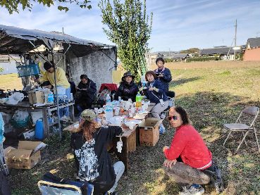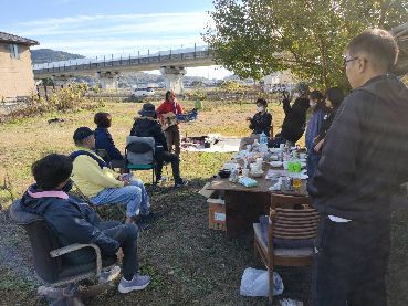 11月23日 好天にめぐまれ、ナイスデイなかまの西脇耕作地で さつまいも・菊芋掘り、焼き芋・豚汁・そして秋刀魚パーティーをしました。 ギターの生演奏もありと、とても有意義な一日を送りました。